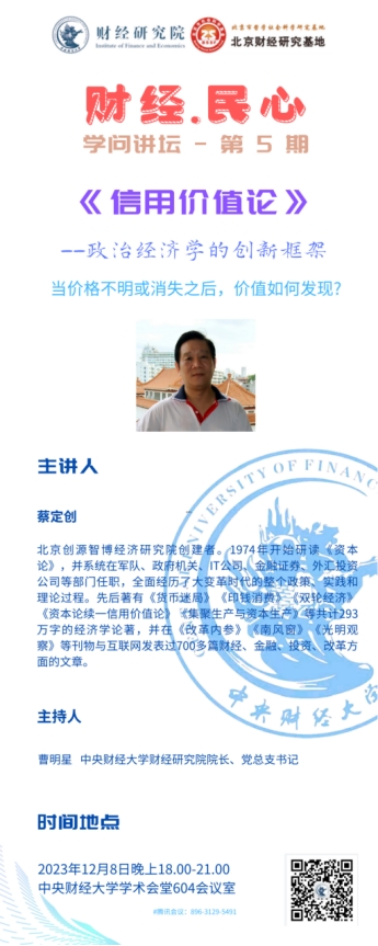 基于此,4556银河国际发起并主办“财经·民心”讲坛,搭建高水平学术交流平台,邀请在中国财经发展领域具有实践洞察和独特思考的专家走进中央财经大学,通过倾听民心、汇聚民智,“问计于民、问道于野”,推介彰显中国之路、中国之治、中国之理的财经理论创新,传播具有思想穿透力和社会影响力的学问成果,以回应时代呼声、服务实践需求。